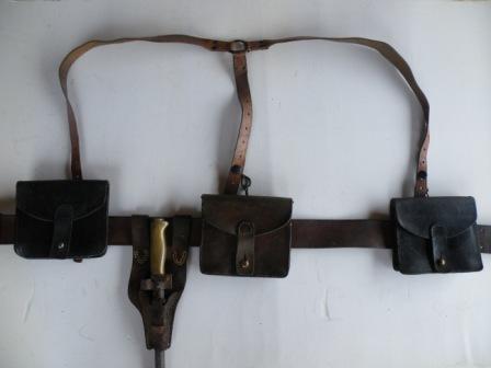 La cartouchière modèle 1905/1914 (1914 étant la date du passage de la couleur noire à la couleur fauve) est pour sa part bien authentique. Elle comporte un passant trapézoïdal mobile et présente le double intérêt d'être en parfait état et surtout matriculée.